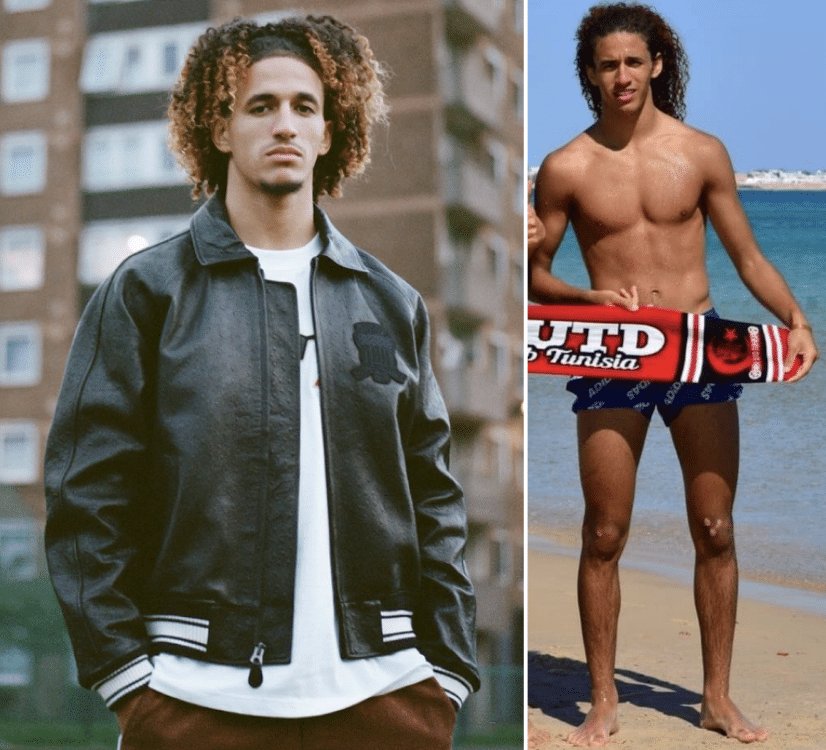 Hannibal Mejbri’s visual identity is impossible to separate from his presence. His long, natural curls instantly frame his face and give him a recognizable silhouette – even before you register the outfit. On Instagram, his style feels organic rather than constructed.