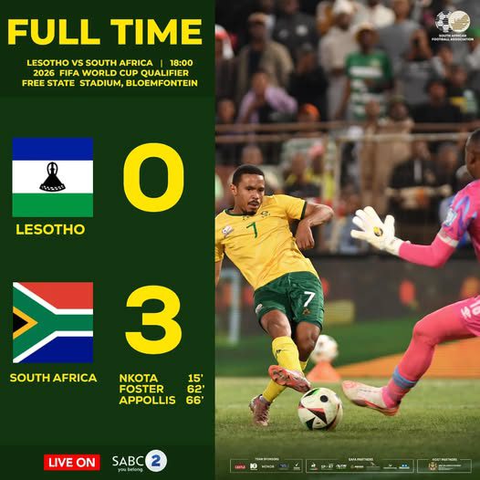 South Africa made light work of Lesotho with a 3-0 victory in the 2026 World Cup qualifiers at the Free State Toyota Stadium on Friday afternoon.