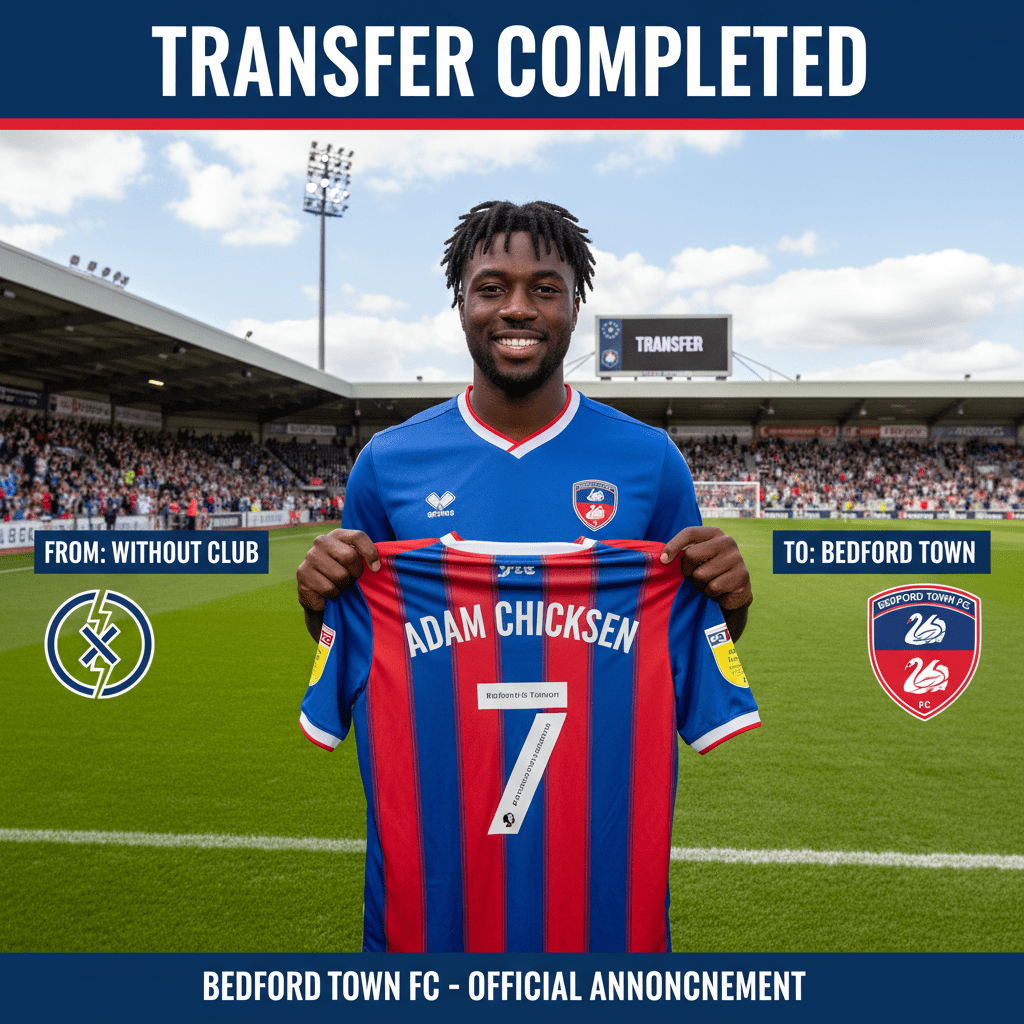 Bedford Town have completed the signing of veteran left-back Adam Chicksen on a free transfer following his spell without a club, with the deal officially commencing on 06/12/2025. The 34-year-old defender joins the National League North side after leaving Notts County earlier in the year, and his contract with Bedford Town is currently recorded as running until an unspecified date.
