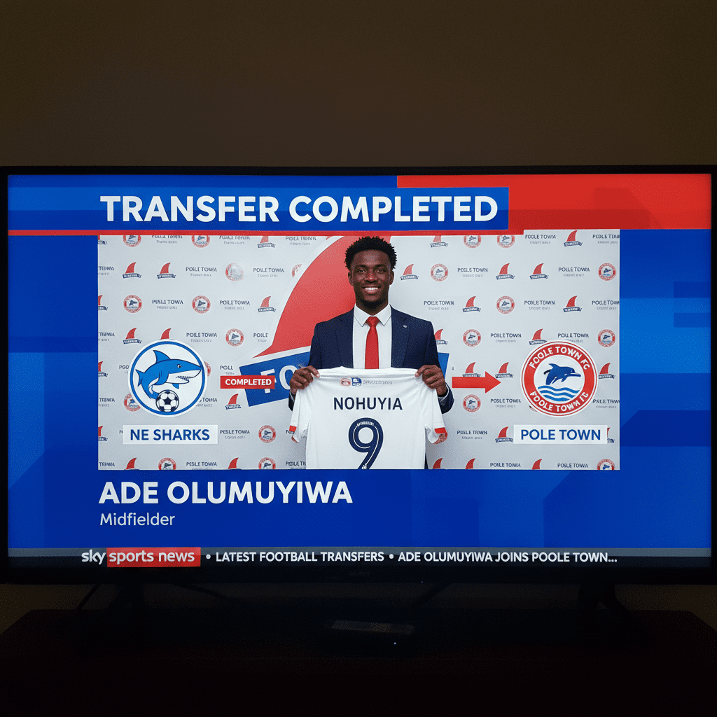 Ade Olumuyiwa has completed a move to Poole Town from NE Sharks on a free transfer, returning to the Dorset club as a permanent signing. The Nigeria centre-back joins Poole Town after his latest spell in the United States, with the transfer registered as a free move between the American side and the English outfit.
