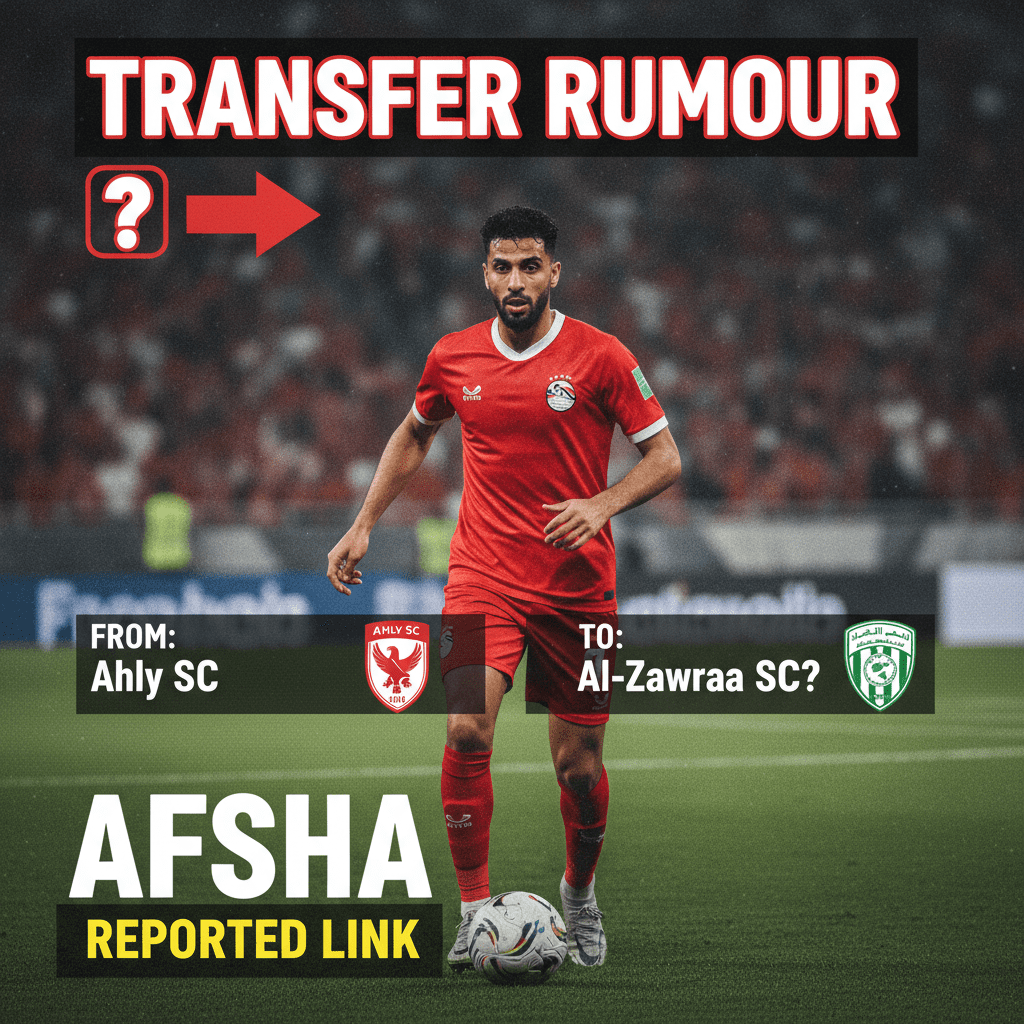 The 29-year-old attacking midfielder, currently valued at €550,000, has emerged as a reported target for the Iraq Stars League club, with the move listed as a rumour and no probability yet attached to the deal. There is no contract expiry date recorded for Afsha at Ahly, raising the possibility that his situation could evolve towards a free-agent scenario if no renewal or transfer fee agreement is finalised.