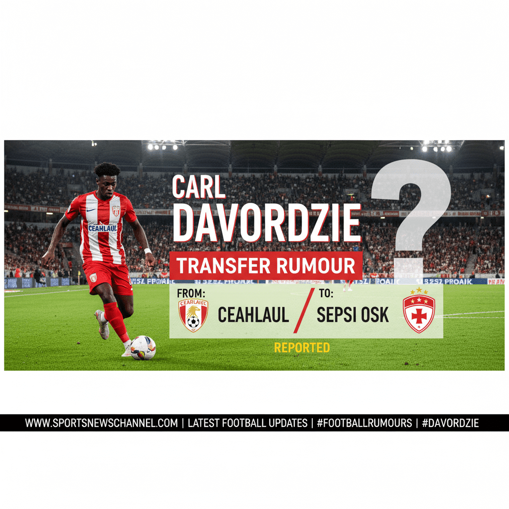 Ghanaian forward Carl Davordzie is being linked with a move from Romanian side Ceahlaul to fellow Liga 2 outfit Sepsi OSK, according to transfer data gathered on 21 December 2025.