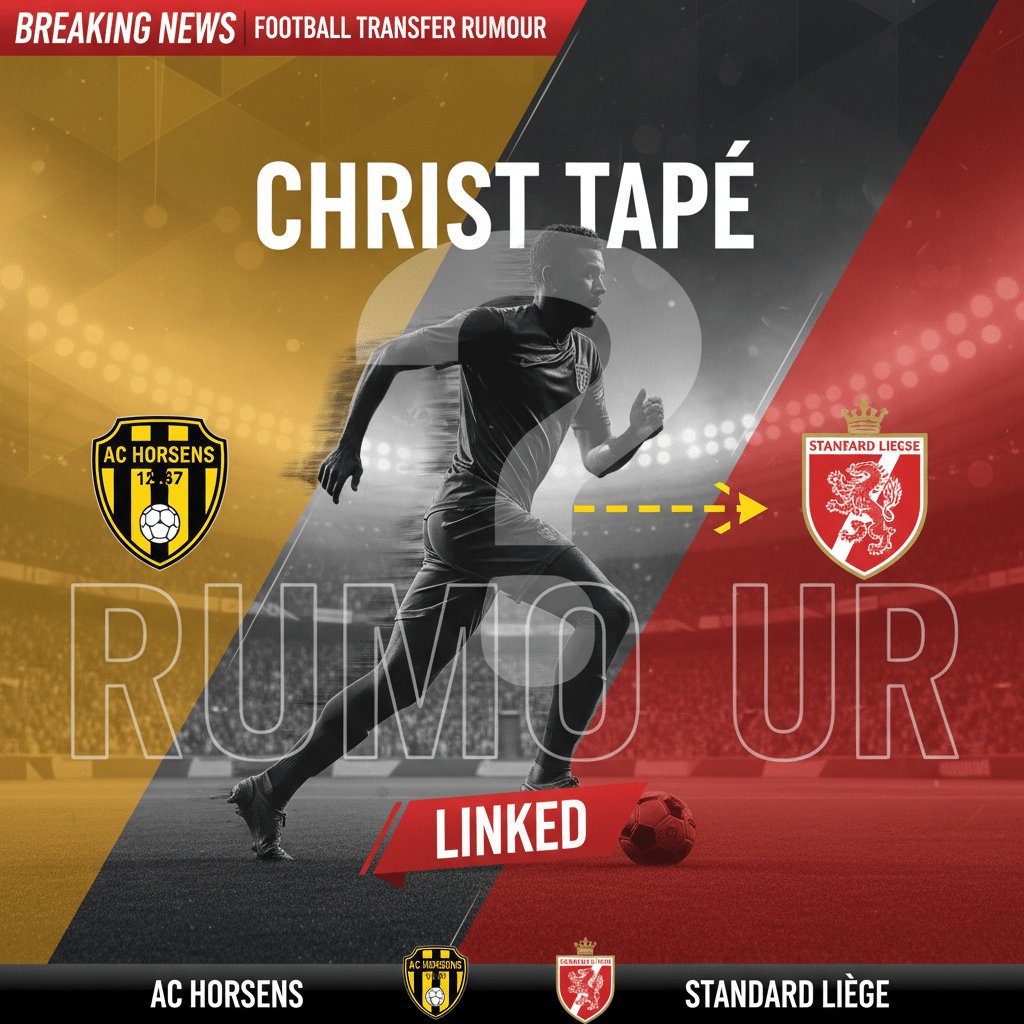 The latest rumour, dated 14 April 2026, links Tapé with a switch from AC Horsens in Denmark’s NordicBet Liga to Standard Liège in Belgium’s Jupiler Pro League, though no fee, contract duration or personal terms have been reported and the probability of the move is marked simply as “?”.