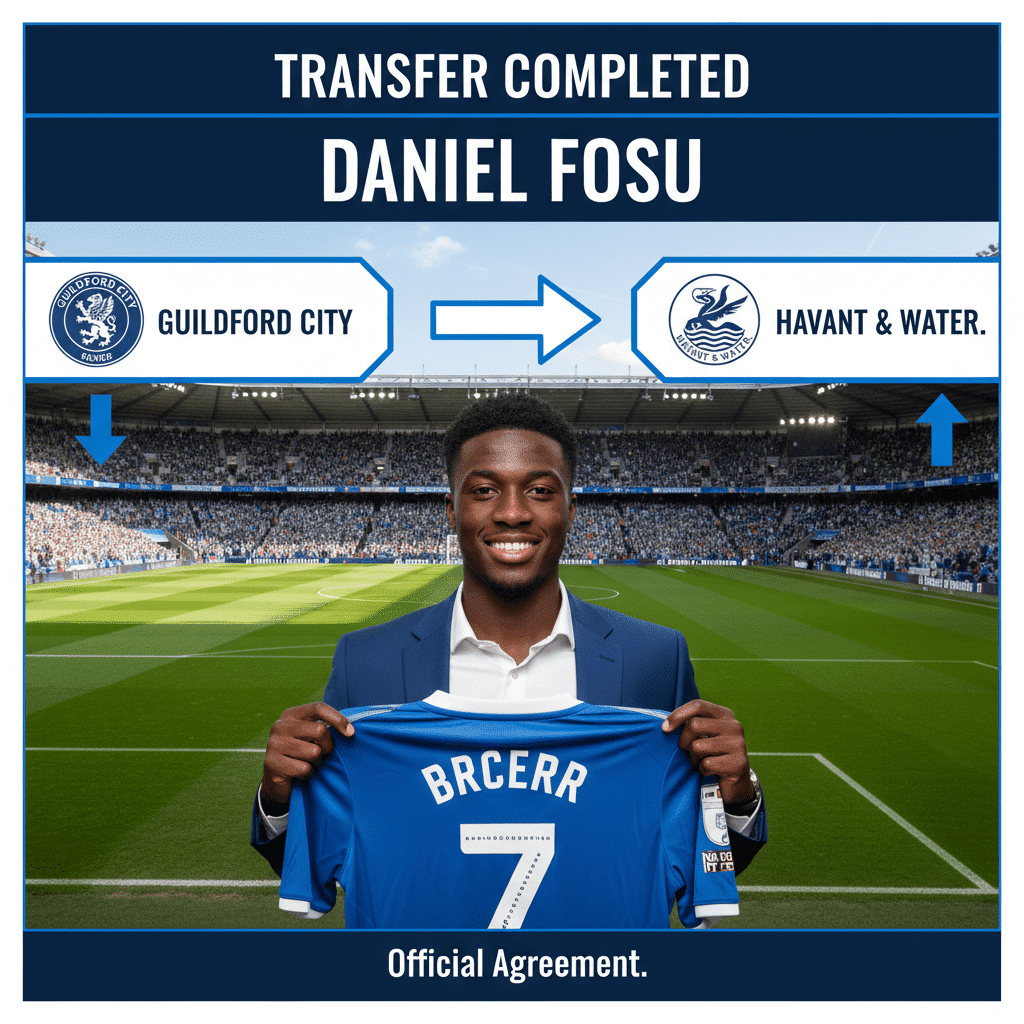 Daniel Fosu has completed a free transfer from Guildford City to Havant & Waterlooville FC, joining the Hampshire club on a deal running from 2025-12-10 to 2026-06-30.