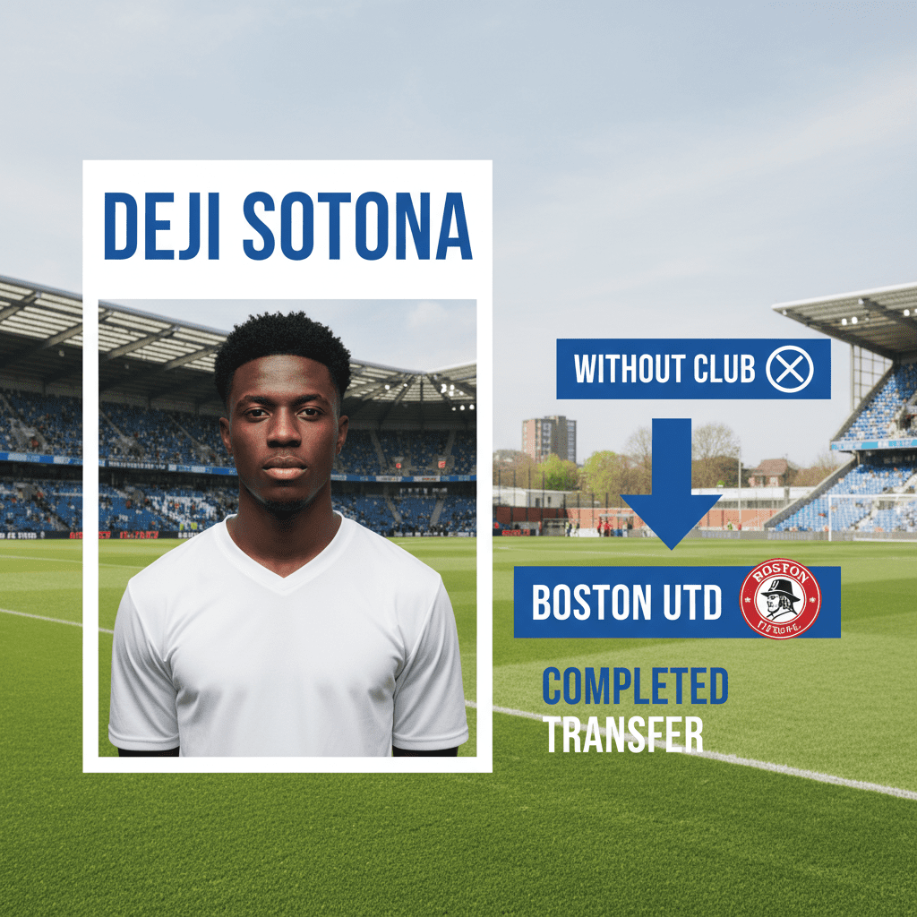 Deji Sotona has completed a move to Boston United on a free transfer after a short spell as a free agent, returning to the Lincolnshire club where he previously spent time on loan. The left-sided forward joins the National League side from his status as “Without Club”, with the deal confirmed as a free transfer. His contract with Boston United starts on 28 November 2025 and is scheduled to run until 30 June 2026.