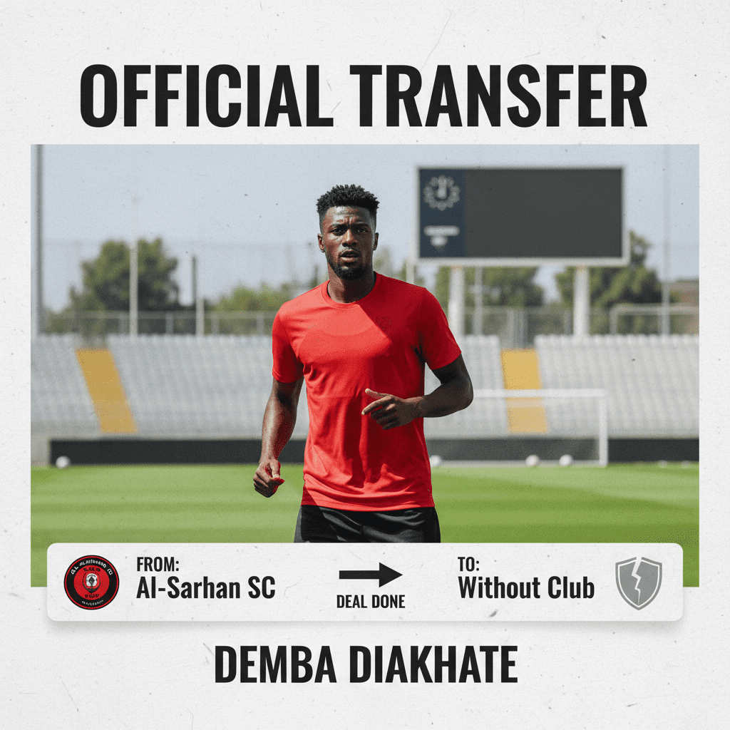 The move brings Diakhate’s spell in Jordan to a close and confirms he is no longer tied to any professional team. The transfer record shows a standard registration change from Al-Sarhan SC to “Without Club”, with no transfer fee involved and no new contract end date registered, underlining that this is a straightforward expiry rather than a sale. With no market value currently recorded and no details of a new employer, the striker is now free to negotiate with interested clubs as a free agent.