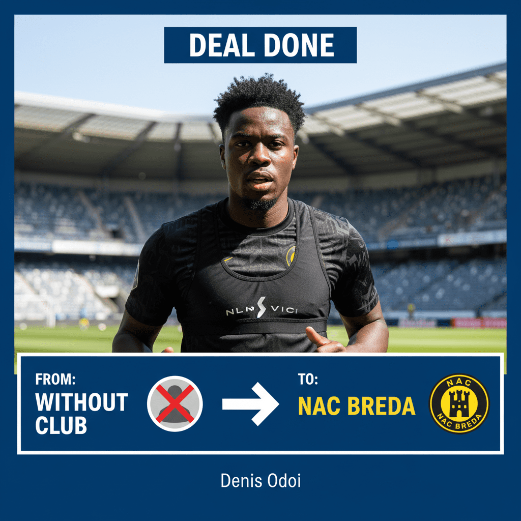 Denis Odoi has completed a move to NAC Breda on a free transfer after a spell without a club, signing a deal that runs from 24 November 2025 to 30 June 2026.