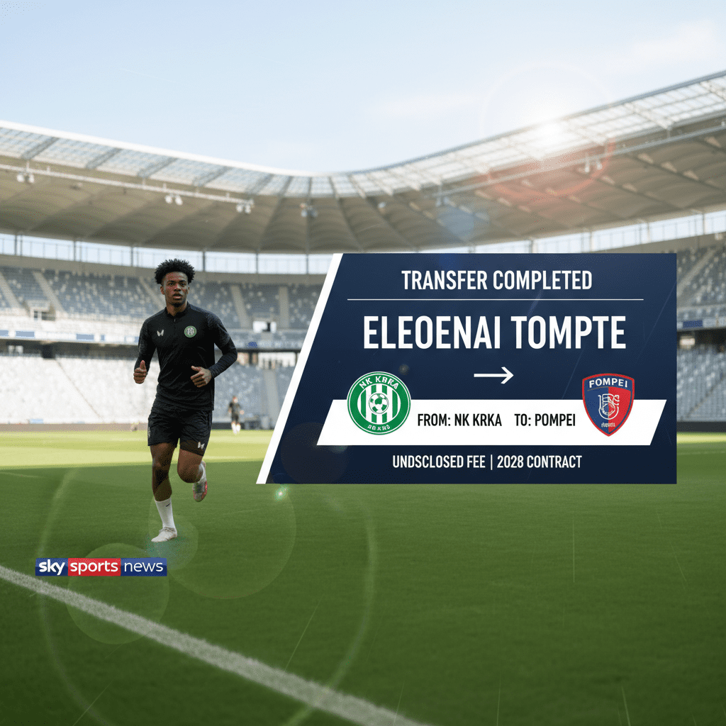 Eleoenai Tompte has completed a permanent move from Slovenian side NK Krka to Italian club FC Pompei on a free transfer, returning to the Serie D outfit after a brief spell away. The Central African Republic and Ghana dual national has signed a deal with Pompei running from 10 December 2025 to 30 June 2026.