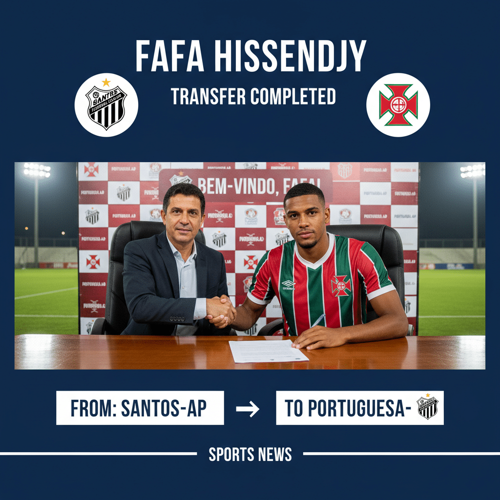 Cameroonian centre-forward Fafa Hissendjy has completed a move from Santos-AP to Portuguesa-AP in Brazil, with the transfer officially recorded on 2026-04-22. The 29-year-old attacker, born in Yaoundé and standing at 1.76m, is now listed as a Portuguesa-AP player, confirming his latest step abroad in Brazilian football.