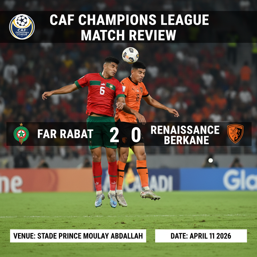 FAR Rabat booked their place in the CAF Champions League final with a controlled 2–0 victory over Renaissance Berkane, combining clinical finishing with disciplined defensive organisation in a tight semi-final that was closer in possession than in cutting edge.