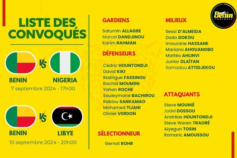 Benin’s national football coach, Gernot Rohr, has unveiled the squad for the upcoming qualifiers of the Africa Cup of Nations (AFCON) 2025. The announcement came during a press conference at the Stade de l’Amitié on Thursday, where Rohr outlined his selections for the crucial opening matches.