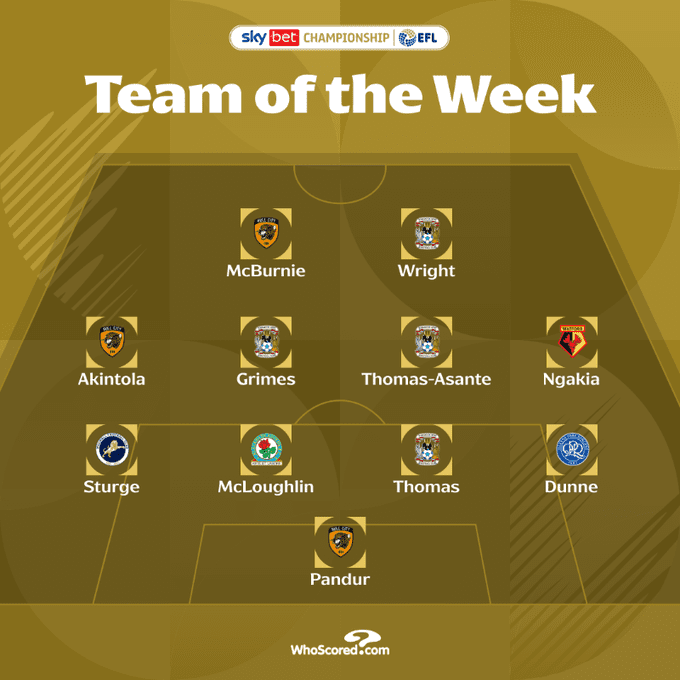 Elsewhere in the Team of the Week lineup, Hull City were well represented through Ivor Pandur, Oliver McBurnie, and David Akintola, whose performances helped their team to an important result over the weekend.