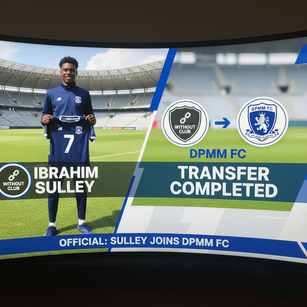 Ibrahim Sulley has completed a move to DPMM FC on a free transfer after a spell without a club, joining the Brunei-based side who compete in Malaysia’s Super League. The Ghanaian attacking midfielder, 24, signs on a deal running from 09/12/2025 to 30/06/2026 following his departure from Accra Great Olympics and subsequent period as a free agent.