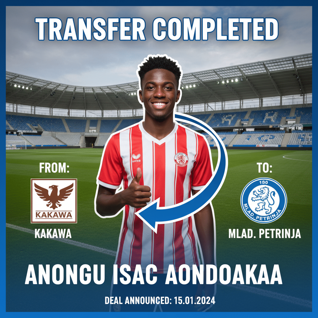 Nigerian midfielder Anongu Isaac Aondoakaa has completed a permanent transfer from Kakawa to Croatian side Mladost Petrinja on a free transfer, with his contract running from 23/04/2026 to 23/04/2027.