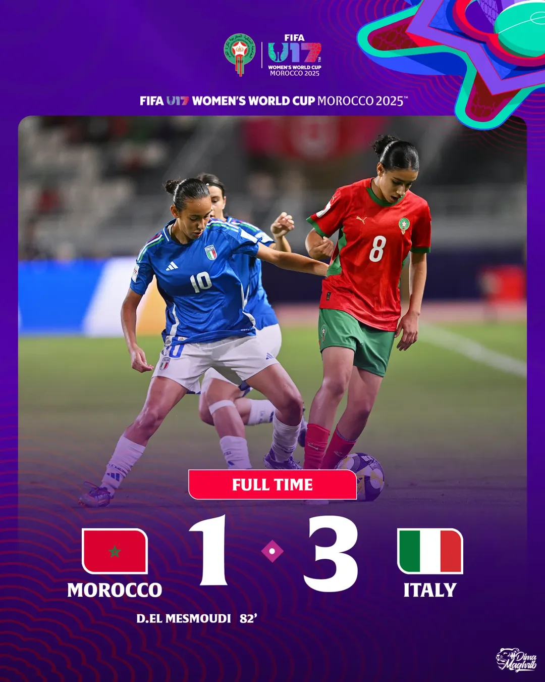 Morocco’s U-17 women’s national team faced their second loss in the group stage of the FIFA U-17 Women’s World Cup, falling 3-1 to Italy at the Olympic Stadium in Rabat.