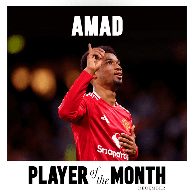 Amad Diallo has been named Manchester United’s Player and Goal of the Month for December 2024, capping off a remarkable year for the young forward at Old Trafford.