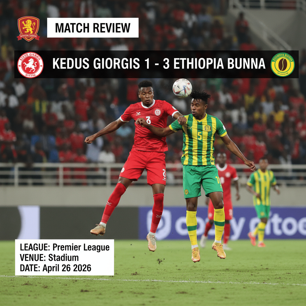 Ethiopia Bunna produced a composed and clinical performance to defeat Kedus Giorgis 3–1 in Match Round 20 of the Ethiopia Premier League, a result that could prove significant in the evolving title and top‑four picture.