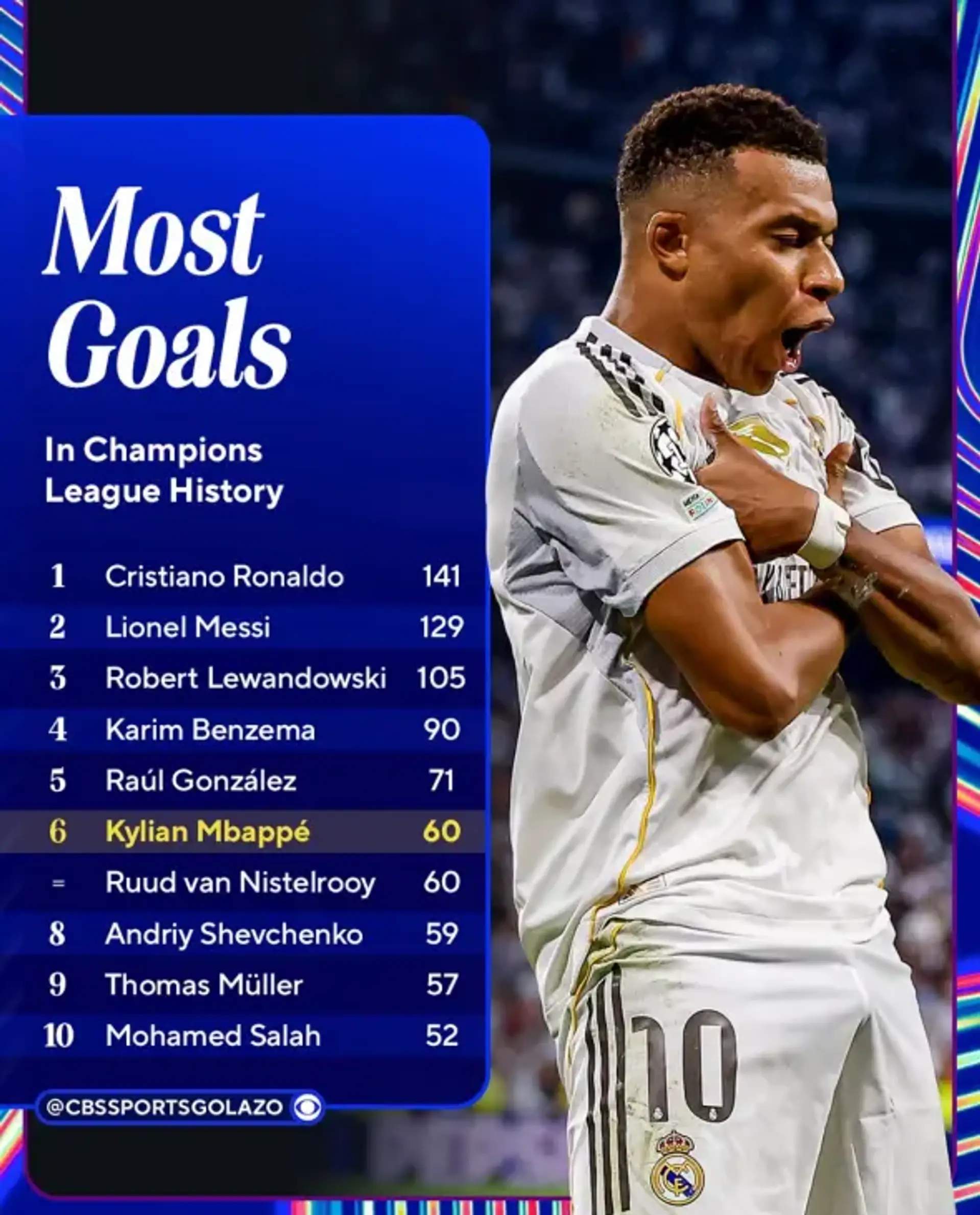 Mbappe’s treble not only secured another commanding win for Madrid but also rewrote the record books. Beginning the night with 57 Champions League goals, he leapt from 9th to 6th on the all-time scoring chart in just ninety minutes. He now sits behind only Cristiano Ronaldo with 141, Lionel Messi with 129, Karim Benzema with 90 and Raul with 71.