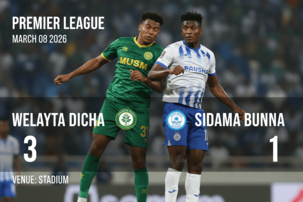 Welayta Dicha 3–1 Sidama Bunna Ethiopia Premier League – Matchday 23 Welayta Dicha strengthened their position in the Ethiopia Premier...