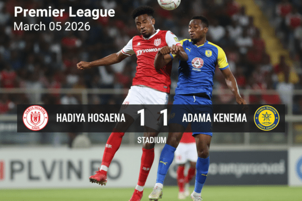 Hadiya Hosaena 1–1 Adama Kenema Ethiopia Premier League – Match Round 22 Hadiya Hosaena and Adama Kenema shared the points...