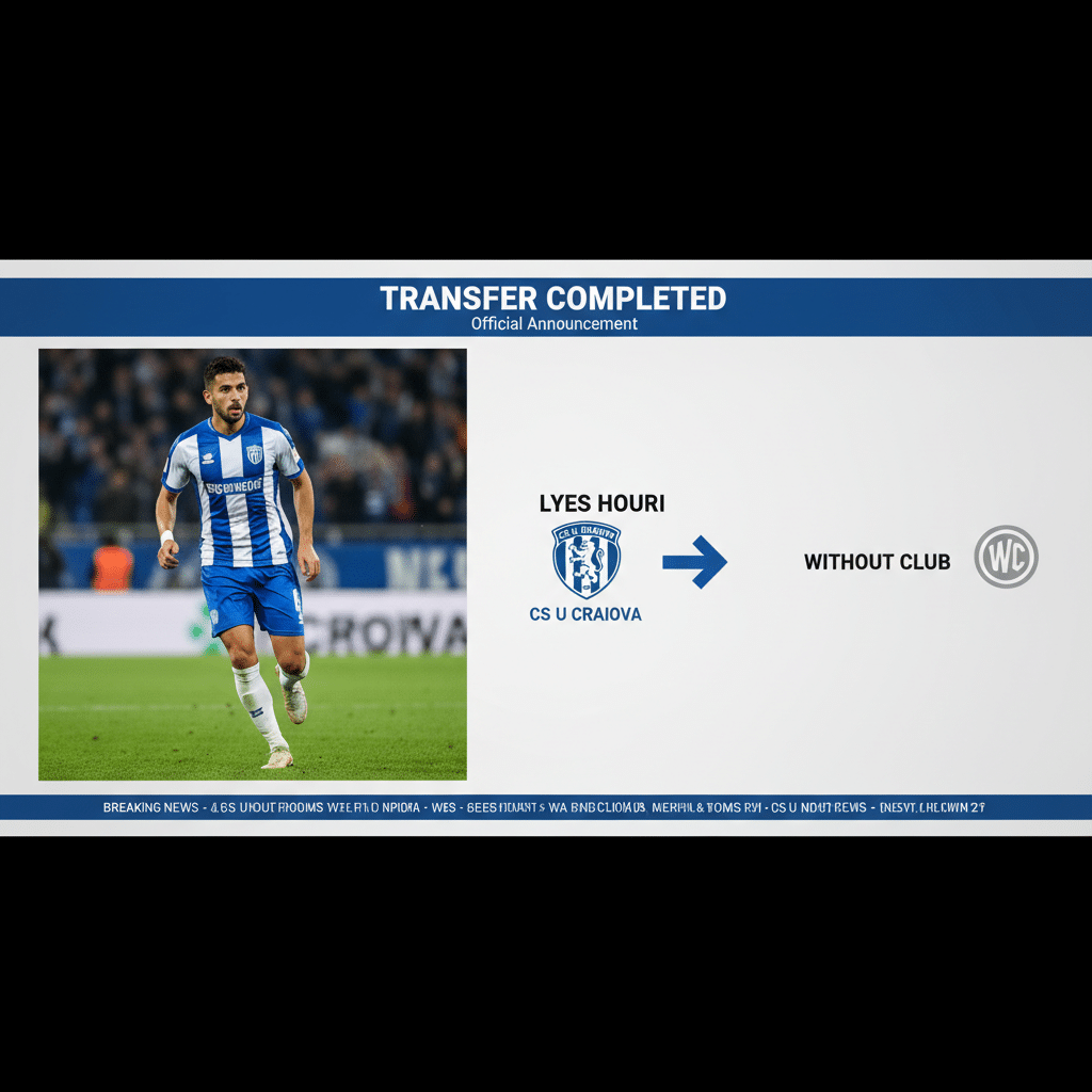 Lyes Houri has completed his departure from CS U Craiova and is now officially without a club, ending his spell in Romania’s SuperLiga and entering the free-agent market after his contract with the Craiova side came to an end. The transfer was registered on 2026-04-18, with the 30-year-old attacking midfielder moving from the Romanian club to the status of “Without Club” on a free, as no transfer fee was involved and his agreement with the club simply expired.