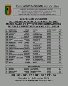 Mali’s national team coach, Baye Bah, has unveiled the squad for the upcoming second-round matches of the African Nations Championship (CHAN) 2025 qualifiers against Mauritania.