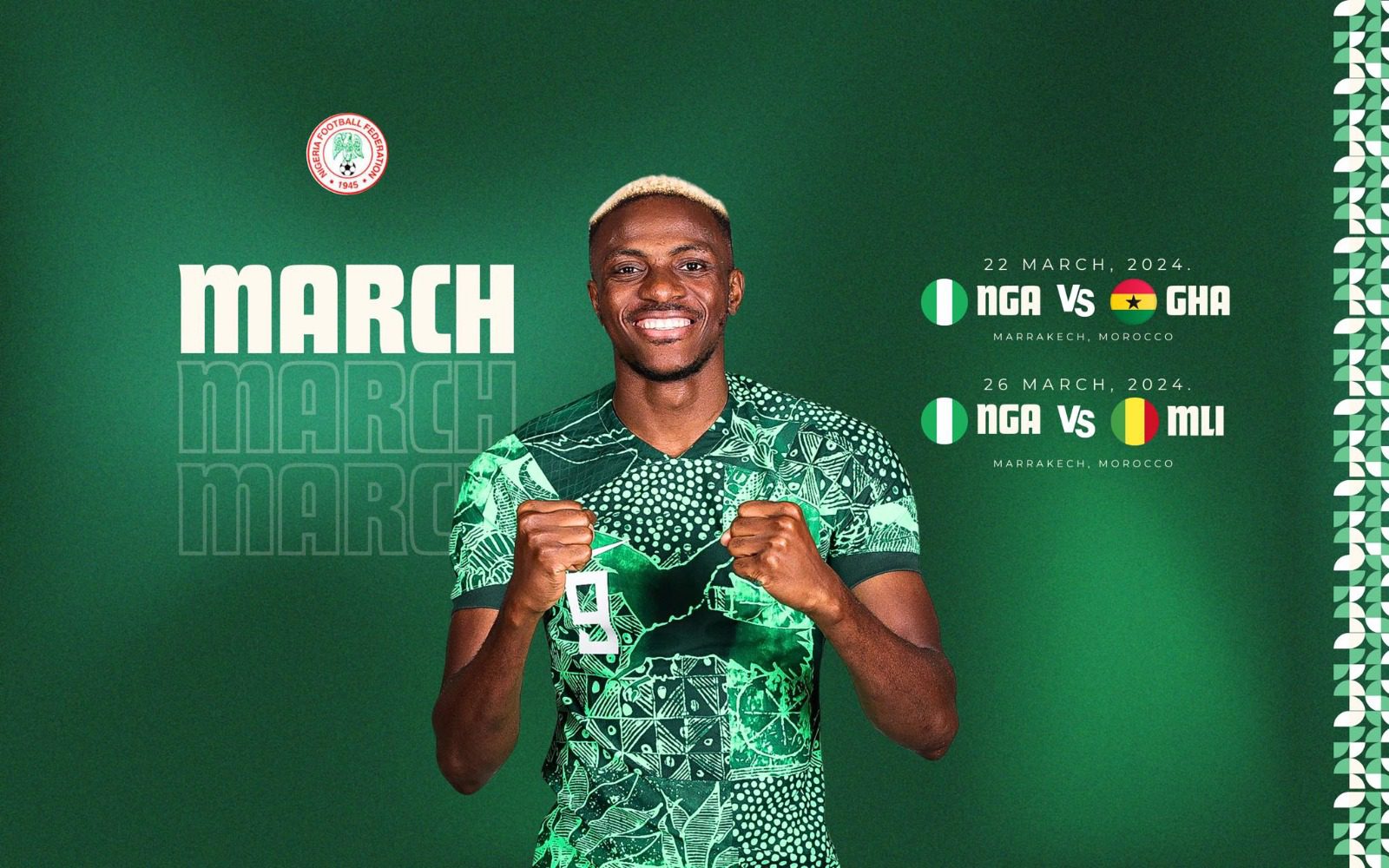 The Super Eagles will take on their rivals Black Stars in a friendly on March 22, 2024, at the Stade Grande Marrakech in Morocco.