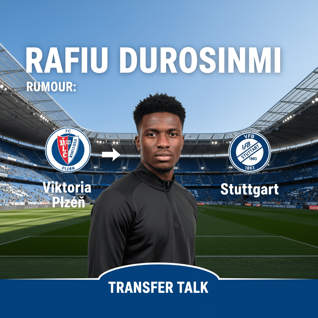 Rafiu Durosinmi has been linked with a move from Viktoria Plzeň to Bundesliga side Stuttgart, with the latest Transfermarkt rumour rating the switch at a 29% probability and listing the Nigeria centre-forward at a market value of €6.50m.