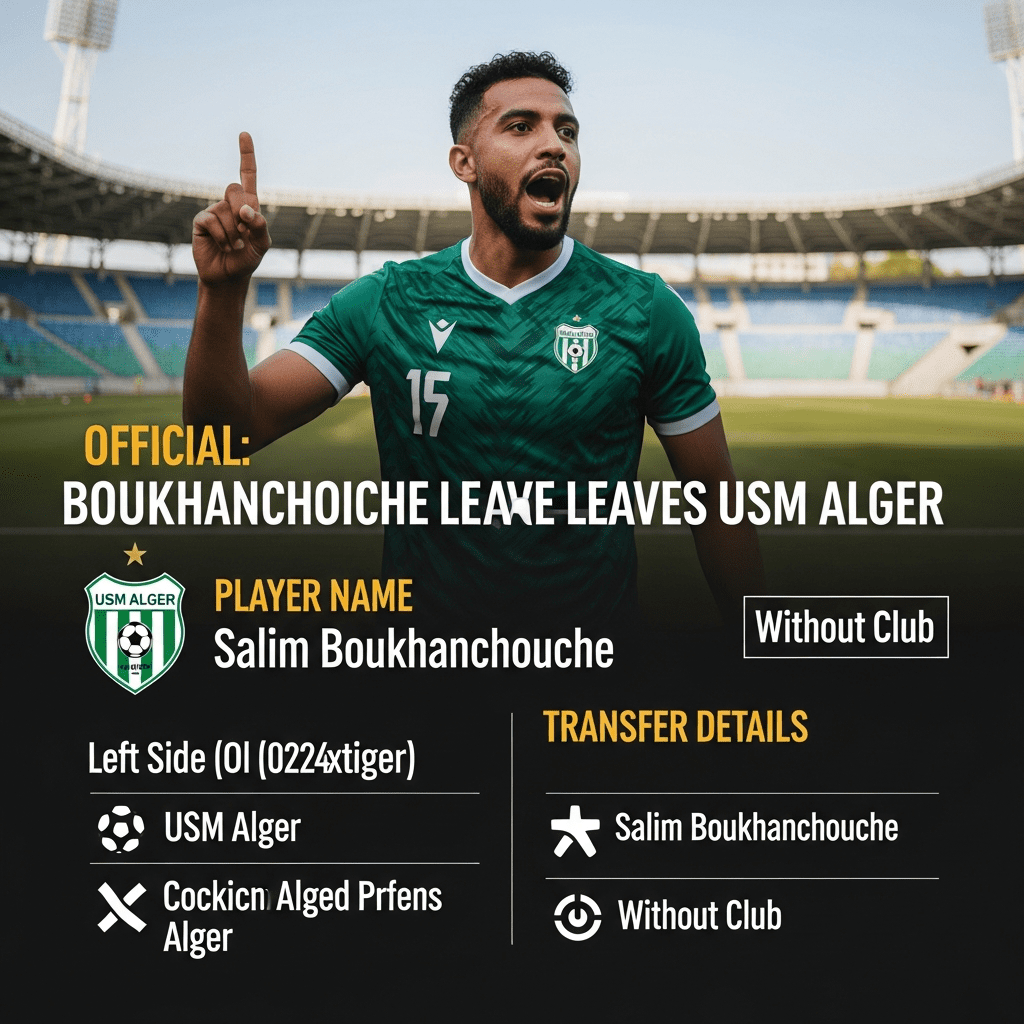 Salim Boukhanchouche has left USM Alger and become a free agent after his contract with the Algerian champions came to an end, with the move registered as a transfer to “Without Club” on 30/11/2025 and his deal expiring on 30/11/2025.