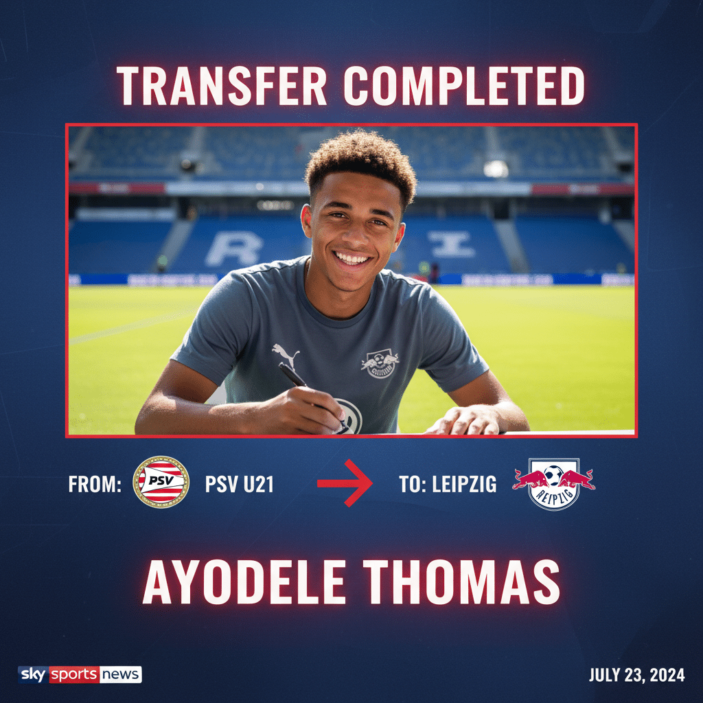 RB Leipzig have completed the signing of 18-year-old left winger Ayodele Thomas from PSV Eindhoven U21 on a permanent deal,...