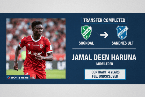 Jamal Deen Haruna has completed a loan move from Sogndal to Sandnes Ulf, joining the OBOS-ligaen side from within the...