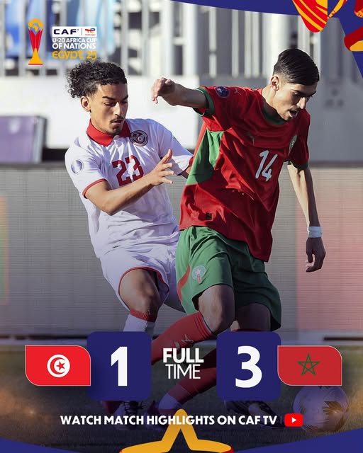 Morocco secured a commanding 3-1 victory over Tunisia in a lively U20 Africa Cup of Nations clash at the Suez Canal Stadium in Ismailia on Wednesday afternoon.
