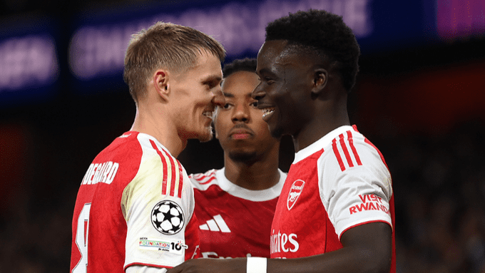 Substitute Bukayo Saka, then put the result beyond doubt in second-half stoppage time. A clever pass from Martin Ødegaard found him inside the box, and with composure, he slotted the ball into the bottom left corner to make it 2-0.