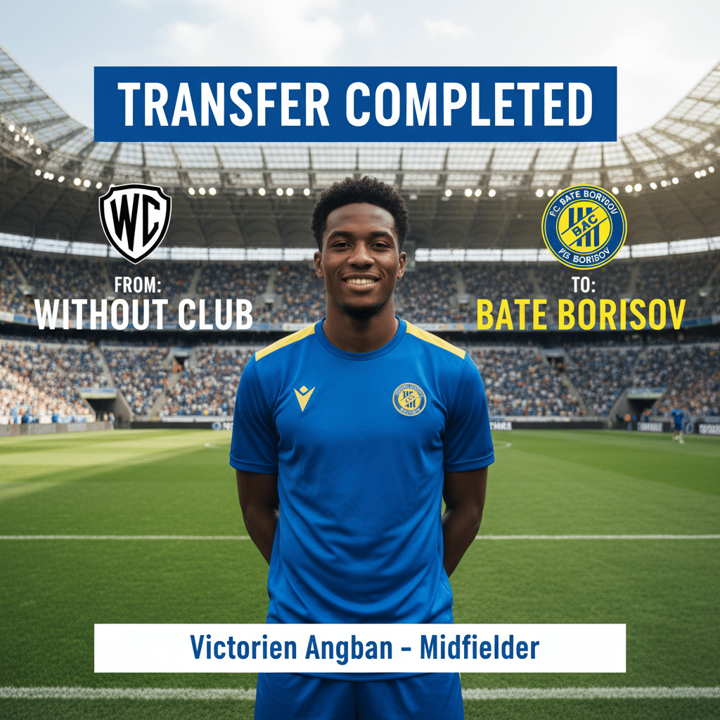 Victorien Angban has completed a free transfer from Without Club to Belarusian side BATE Borisov, sealing a move that places the Ivorian central midfielder back into top-flight football in the Vysheyshaya Liga. The switch was finalised on 2026-04-23, with the 29-year-old signing a deal that runs until 2026-04-23, confirming his status as a fully registered BATE player rather than a rumoured target.