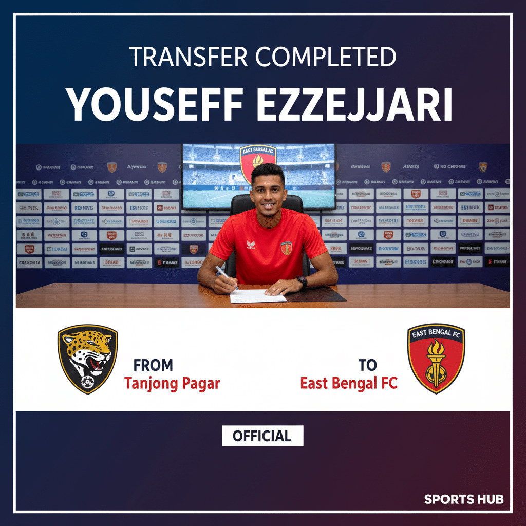 Youssef Ezzejjari has completed a move to East Bengal FC from Singapore side Tanjong Pagar United on a free transfer, signing a contract running from 2026-02-01 to 2027-05-31. The 32-year-old centre-forward, who holds both Spanish and Moroccan nationality, arrives in Kolkata with a current market valuation of €200k and becomes the latest attacking addition for the Indian Super League club.