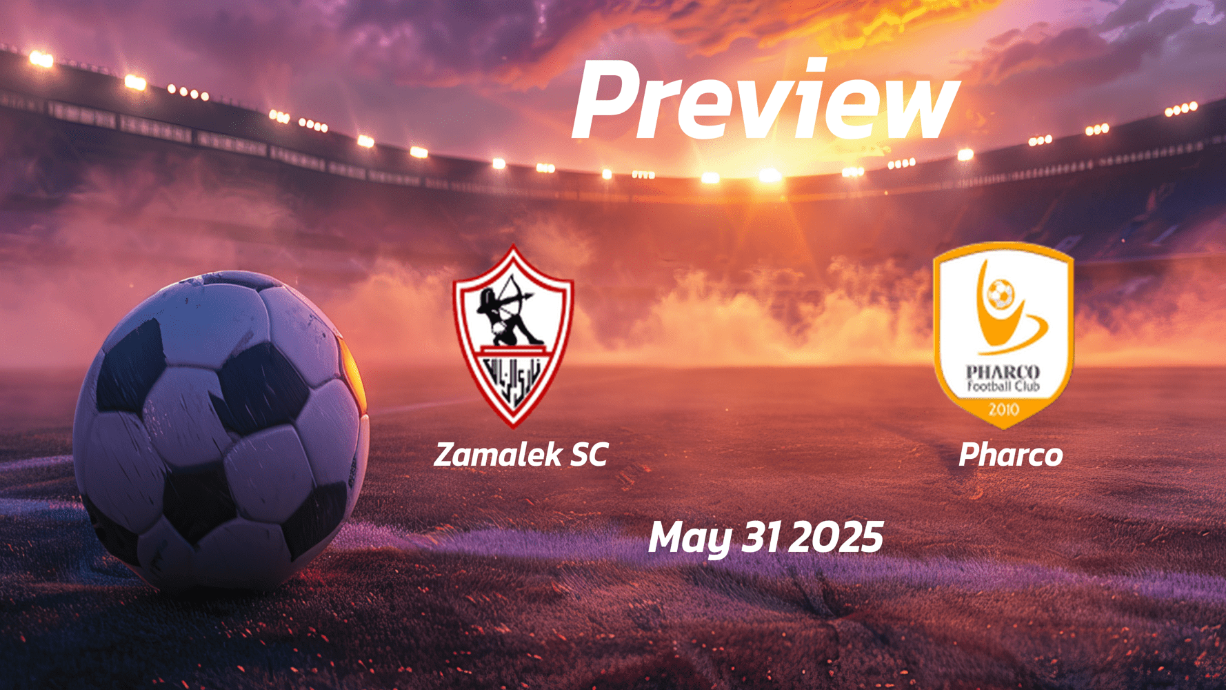 The match between the teams Zamalek SC and Pharco will take place on May 31 at 17:00 (GMT) at the stadium Cairo International Stadium.